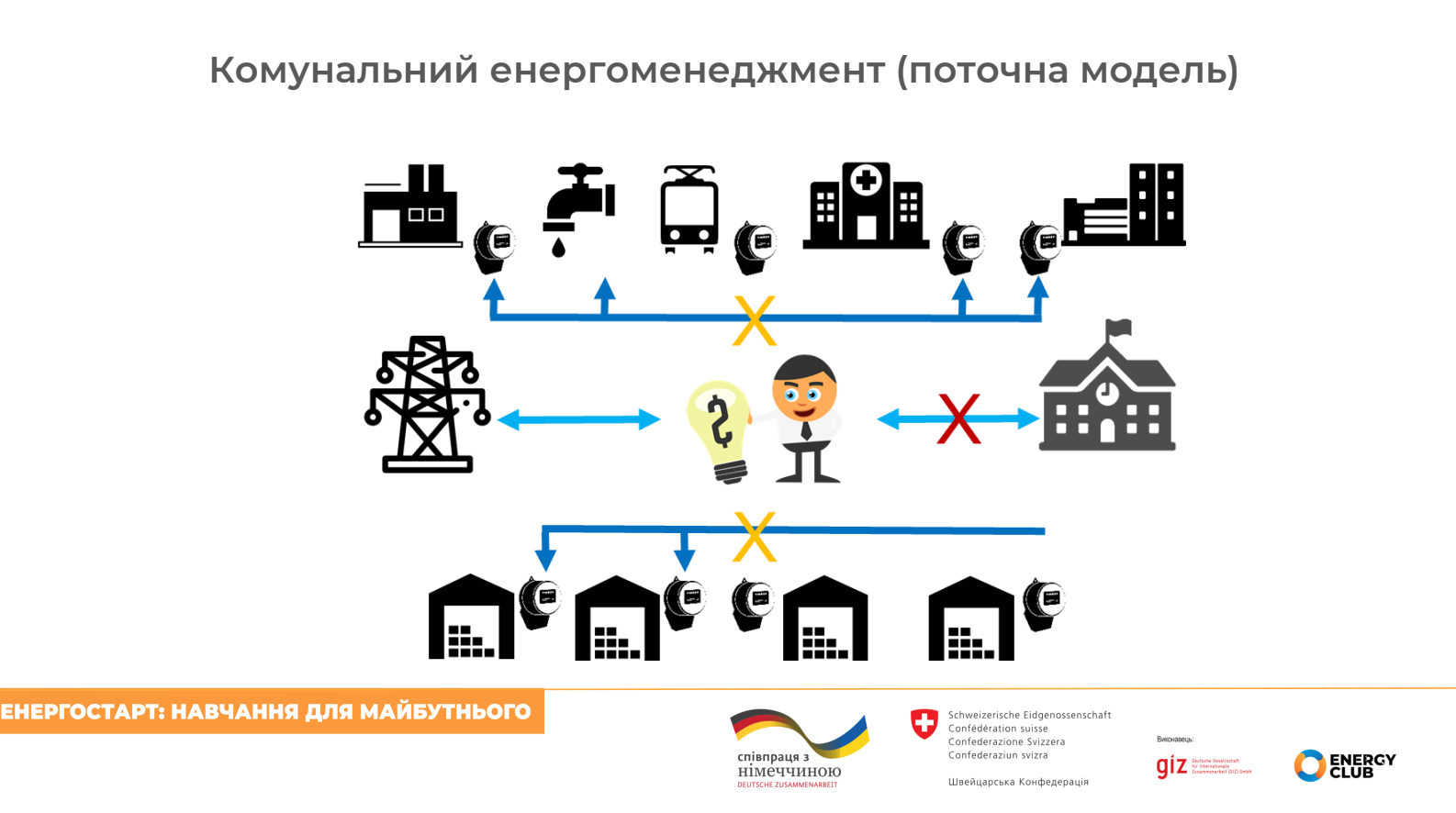 Кілька підприємств — школи, лікарні, адміністративні будівлі, водоканал — кожне саме собі веде облік і контролює споживання. Але ніхто не складає єдиний енергетичний баланс. Громада не знає точно: